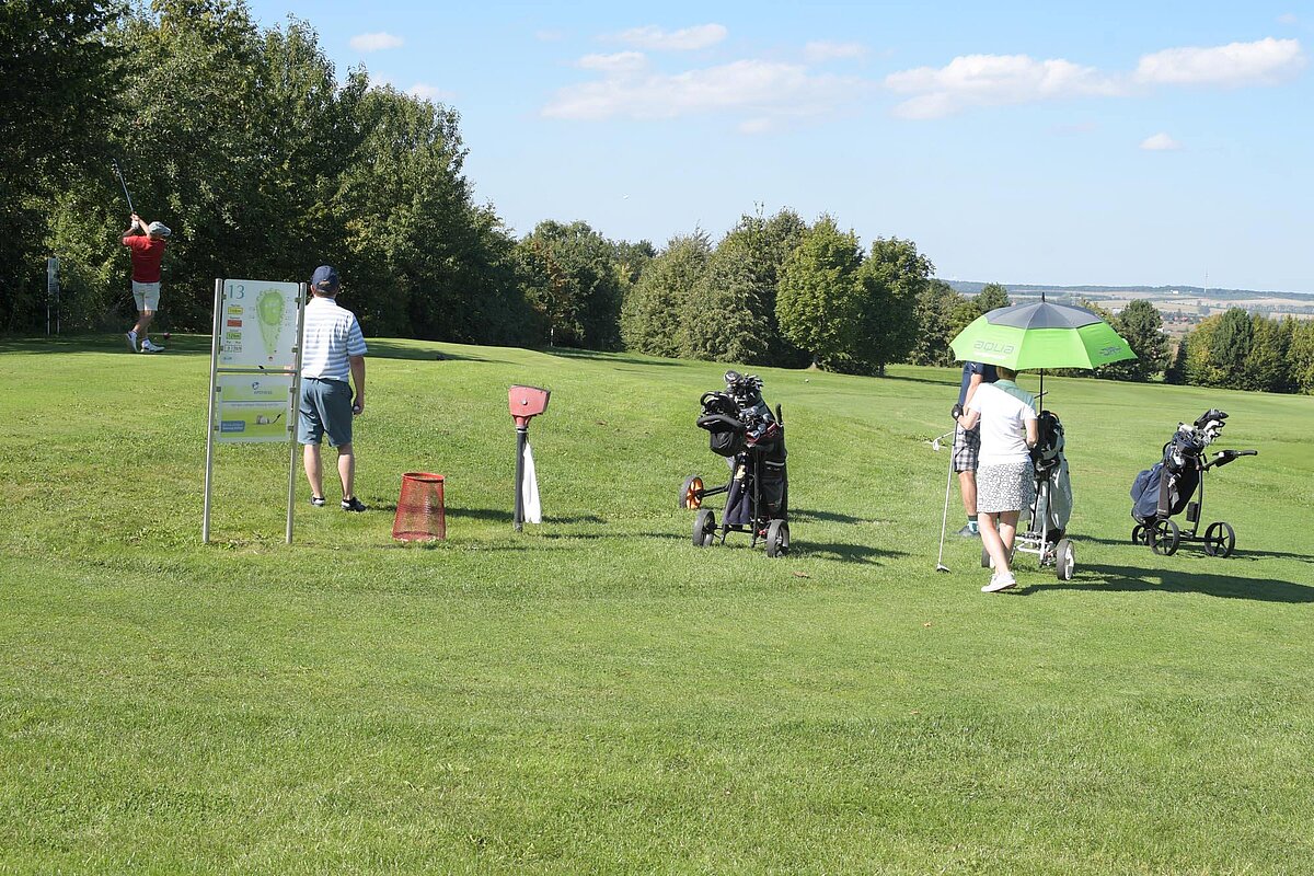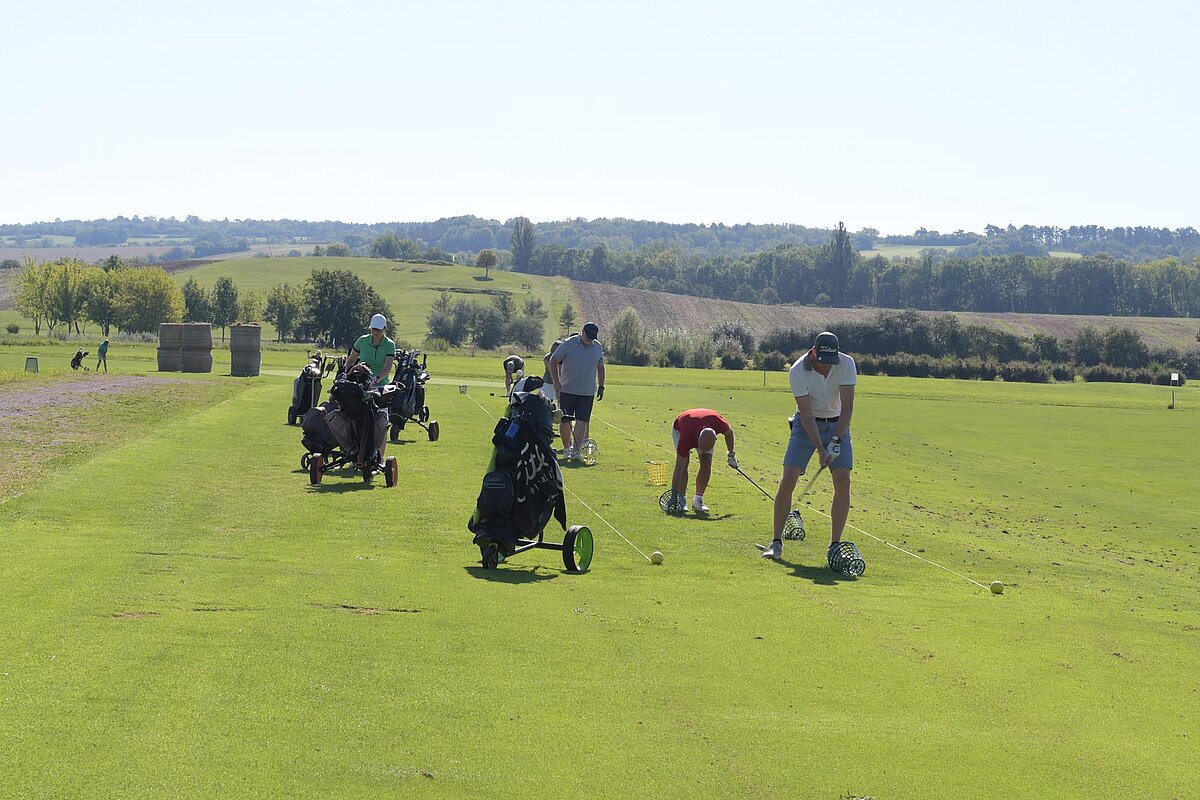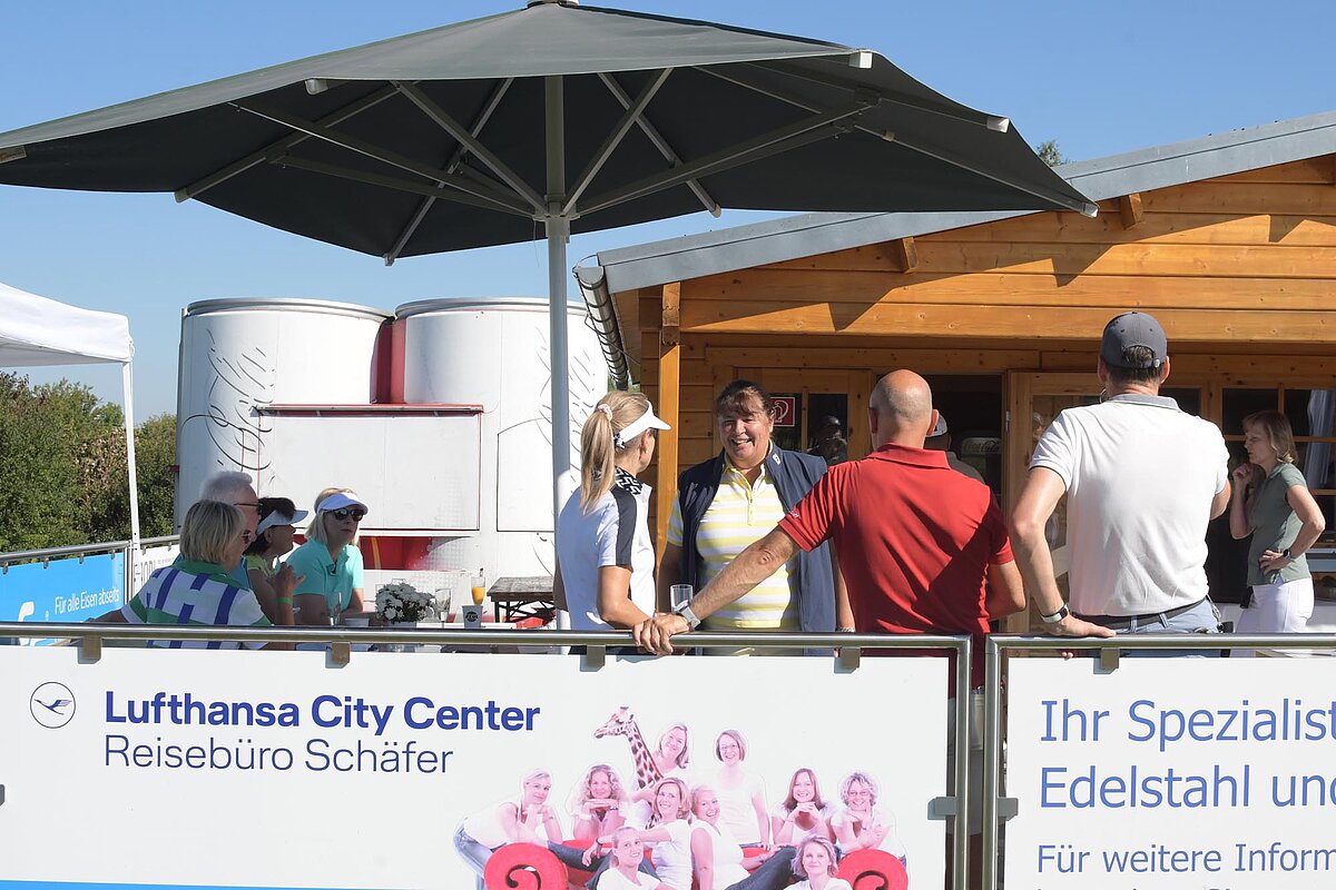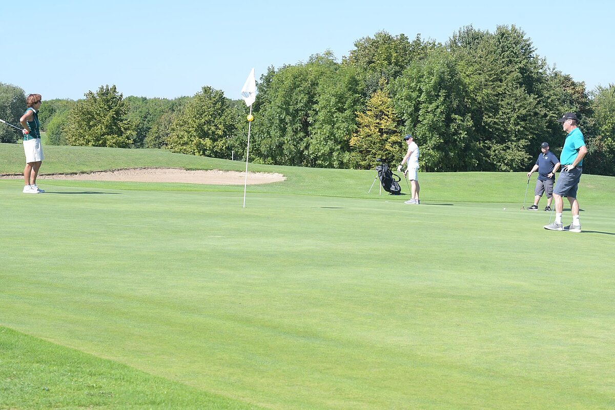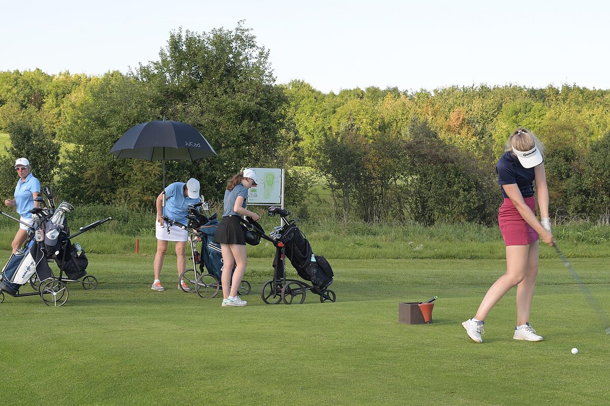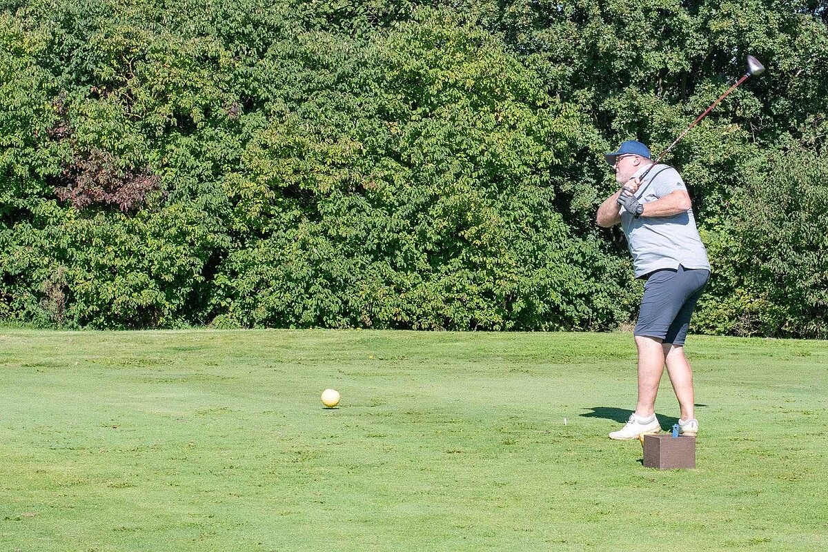 16. September 2023 - High Noon - Startschuss zu unserem Geburtstagsturnier. Bereits ab 10:00 Uhr waren die ersten Spieler auf der Driving Range und haben sich vorbereitet für dieses Turnier! Denn vor dem Kanonenstart musste ja noch etwas erledigt werden. Sektempfang und Begrüßung durch den Präsidenten, Teegeschenk richtig verstauen und gut aussehen beim Gruppenfoto (siehe oben). Alle Löcher waren belegt und 65 Spieler konnten einen phantastischen Tag genießen. An der Hütte an der Bahn 1 gab es Kaffee und Kuchen. Und oben an der Bahn 12 wartete die würzigen Alternativen mit Sandwiches und leckeren Fleischwaren von unserer neuen Fleischerei in Mühlberg. Fazit: Würzig schlägt Süß.