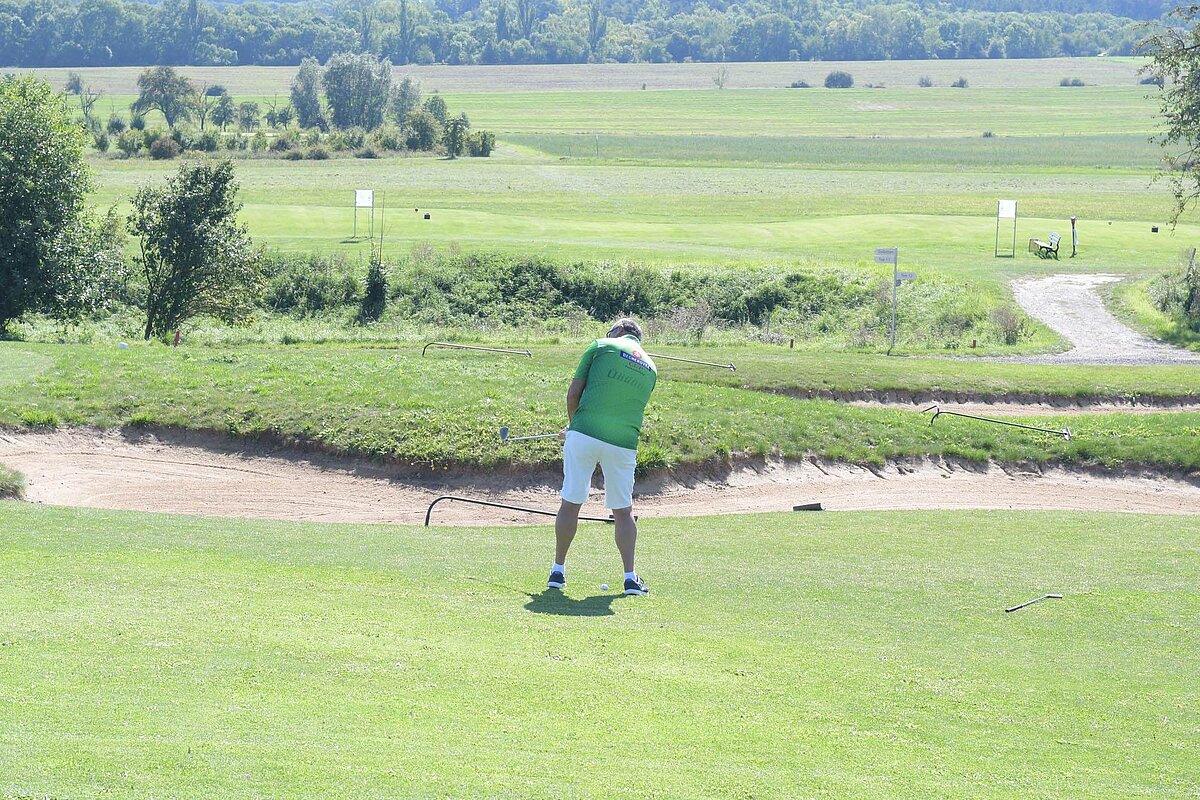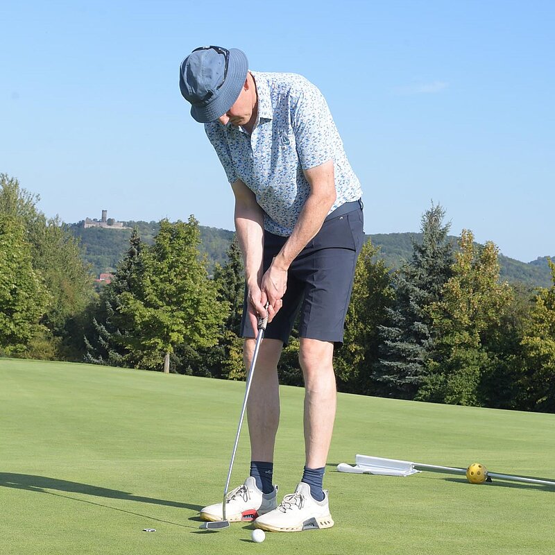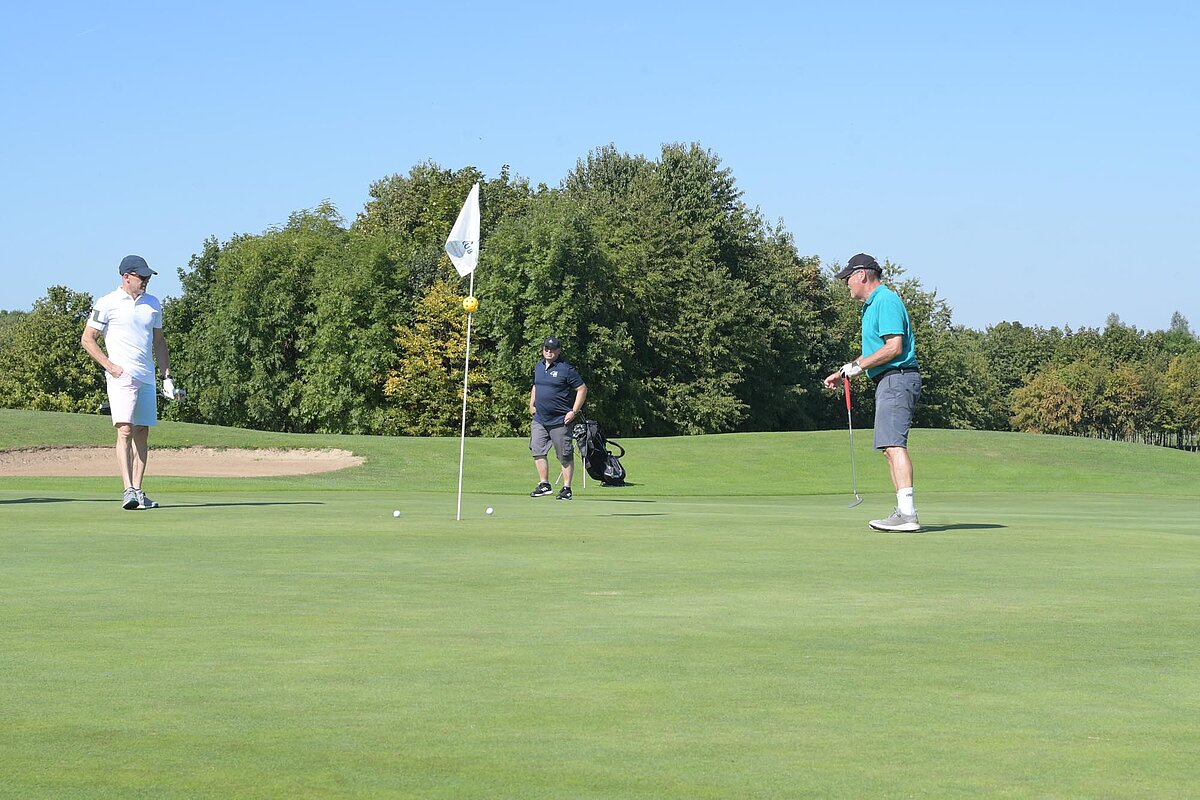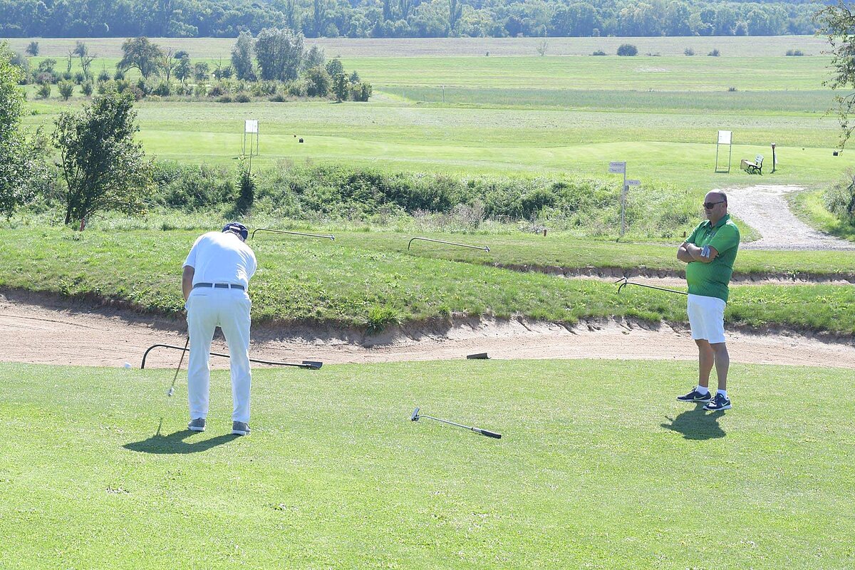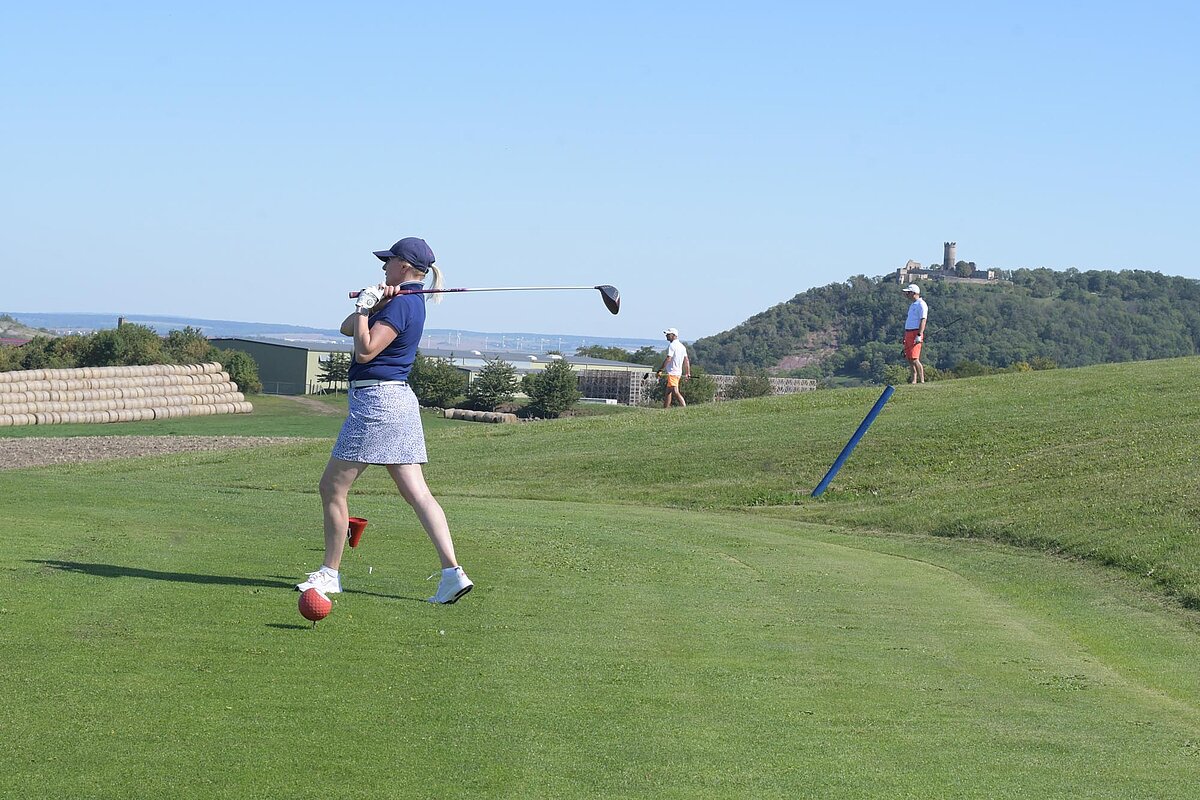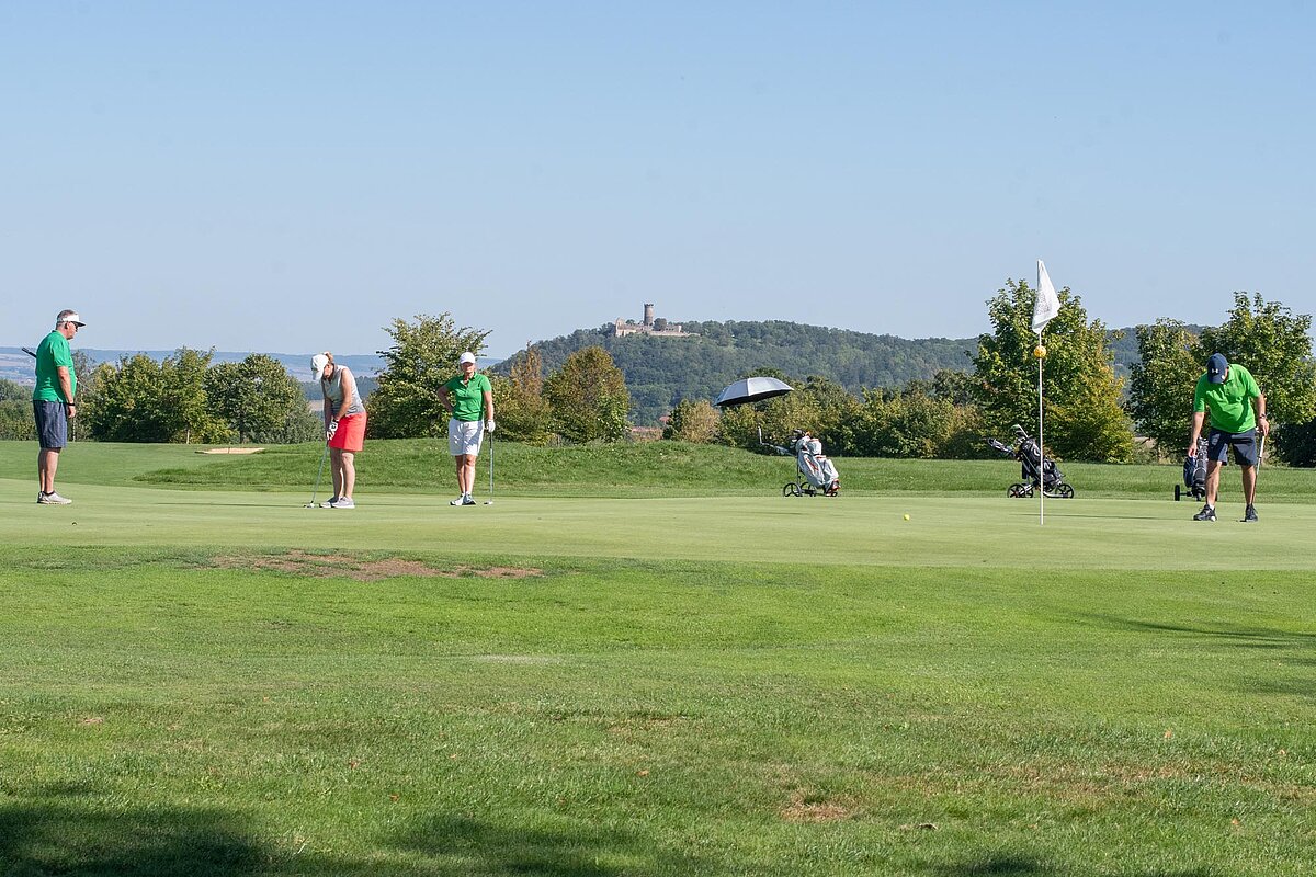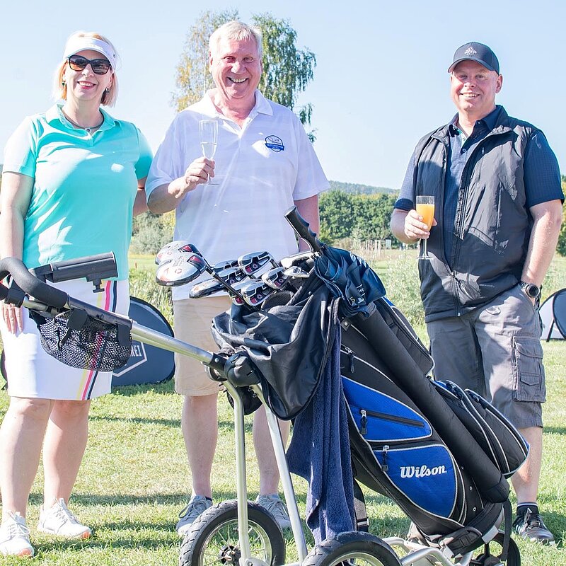 16. September 2023 - High Noon - Startschuss zu unserem Geburtstagsturnier. Bereits ab 10:00 Uhr waren die ersten Spieler auf der Driving Range und haben sich vorbereitet für dieses Turnier! Denn vor dem Kanonenstart musste ja noch etwas erledigt werden. Sektempfang und Begrüßung durch den Präsidenten, Teegeschenk richtig verstauen und gut aussehen beim Gruppenfoto (siehe oben). Alle Löcher waren belegt und 65 Spieler konnten einen phantastischen Tag genießen. An der Hütte an der Bahn 1 gab es Kaffee und Kuchen. Und oben an der Bahn 12 wartete die würzigen Alternativen mit Sandwiches und leckeren Fleischwaren von unserer neuen Fleischerei in Mühlberg. Fazit: Würzig schlägt Süß.