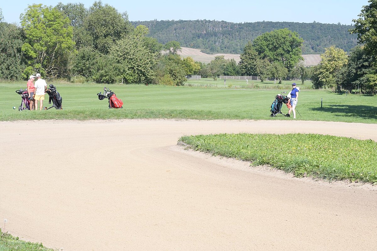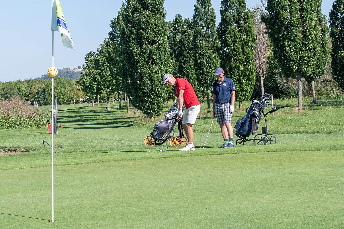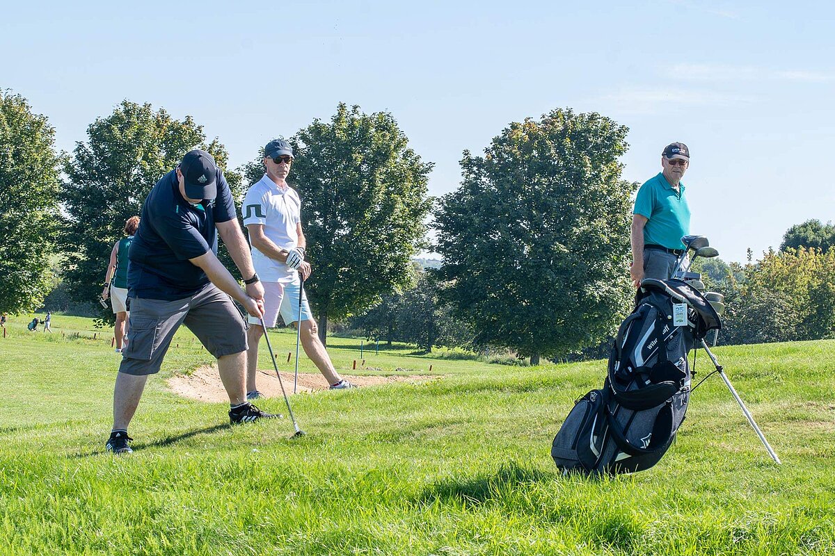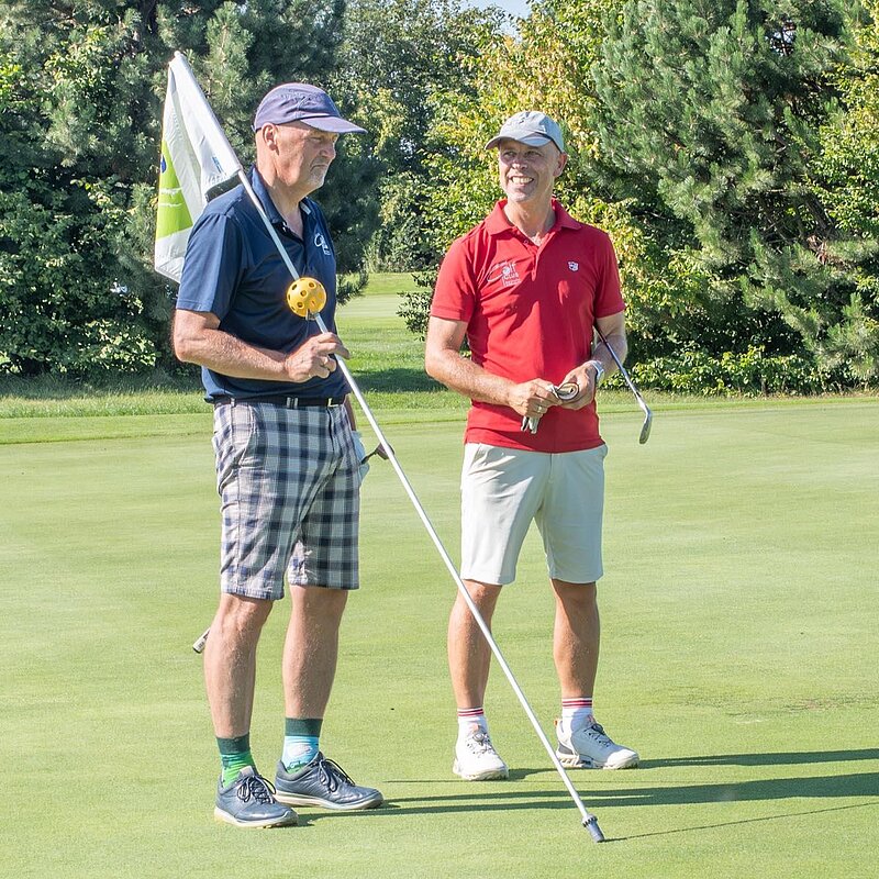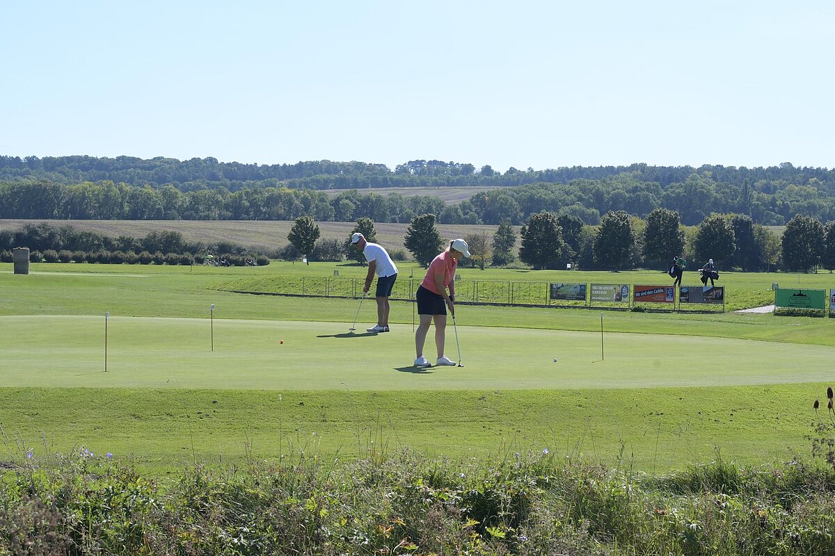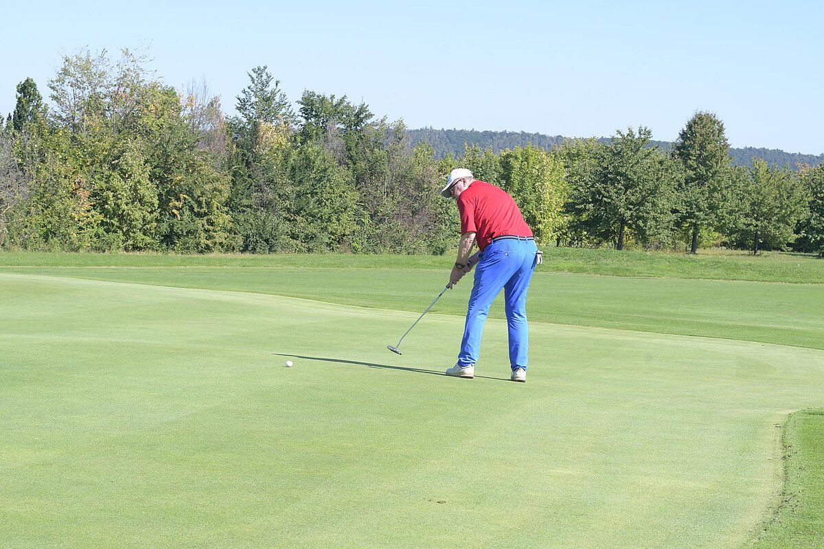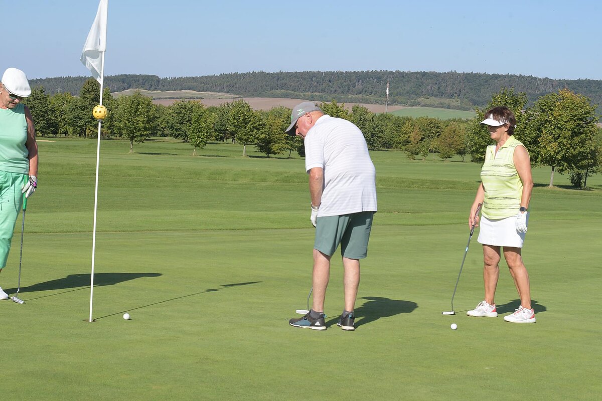 16. September 2023 - High Noon - Startschuss zu unserem Geburtstagsturnier. Bereits ab 10:00 Uhr waren die ersten Spieler auf der Driving Range und haben sich vorbereitet für dieses Turnier! Denn vor dem Kanonenstart musste ja noch etwas erledigt werden. Sektempfang und Begrüßung durch den Präsidenten, Teegeschenk richtig verstauen und gut aussehen beim Gruppenfoto (siehe oben). Alle Löcher waren belegt und 65 Spieler konnten einen phantastischen Tag genießen. An der Hütte an der Bahn 1 gab es Kaffee und Kuchen. Und oben an der Bahn 12 wartete die würzigen Alternativen mit Sandwiches und leckeren Fleischwaren von unserer neuen Fleischerei in Mühlberg. Fazit: Würzig schlägt Süß.
