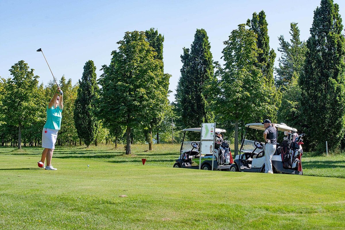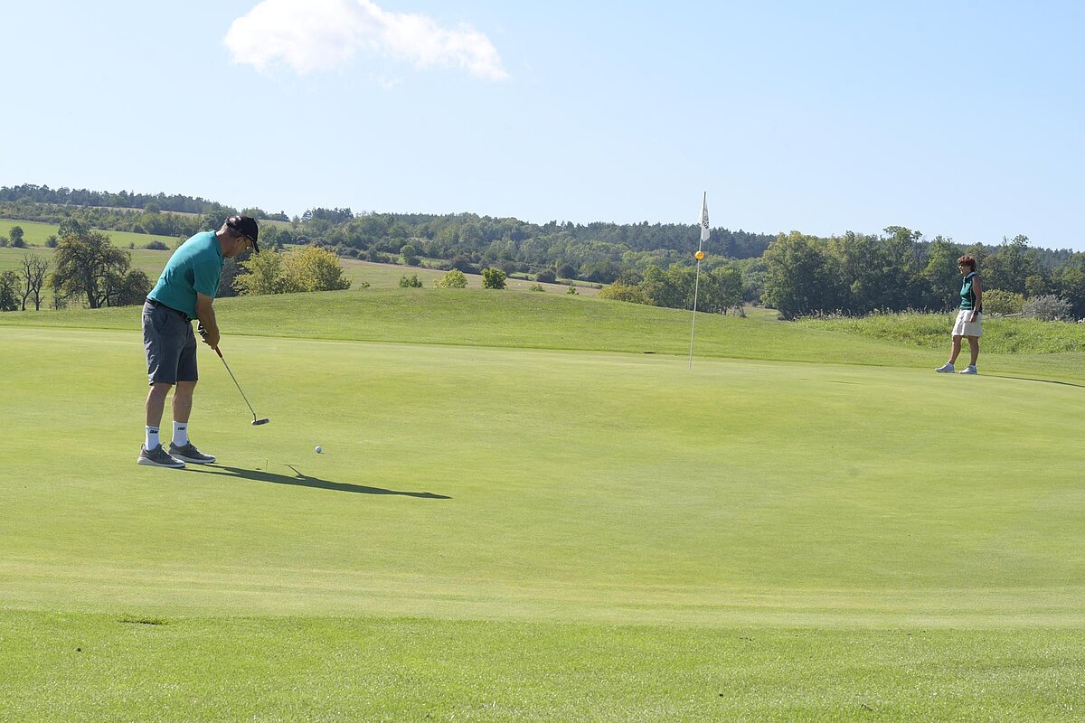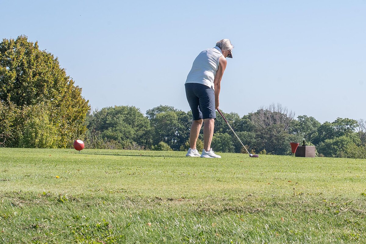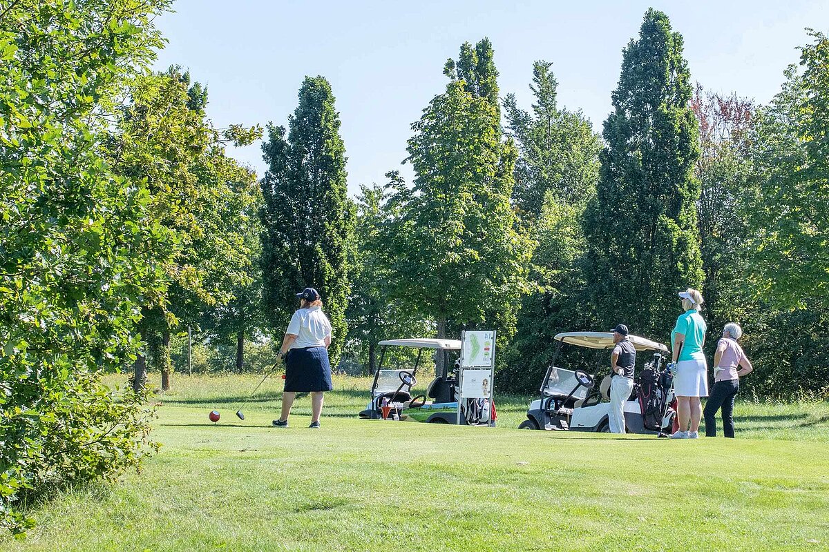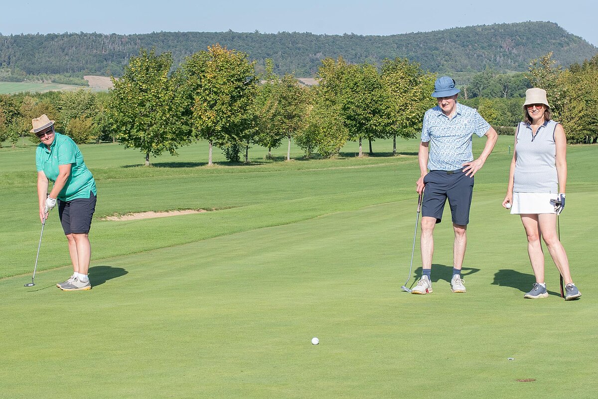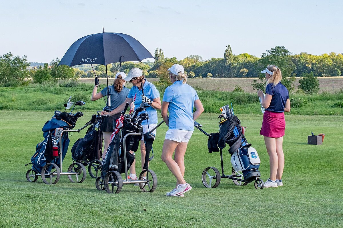 16. September 2023 - High Noon - Startschuss zu unserem Geburtstagsturnier. Bereits ab 10:00 Uhr waren die ersten Spieler auf der Driving Range und haben sich vorbereitet für dieses Turnier! Denn vor dem Kanonenstart musste ja noch etwas erledigt werden. Sektempfang und Begrüßung durch den Präsidenten, Teegeschenk richtig verstauen und gut aussehen beim Gruppenfoto (siehe oben). Alle Löcher waren belegt und 65 Spieler konnten einen phantastischen Tag genießen. An der Hütte an der Bahn 1 gab es Kaffee und Kuchen. Und oben an der Bahn 12 wartete die würzigen Alternativen mit Sandwiches und leckeren Fleischwaren von unserer neuen Fleischerei in Mühlberg. Fazit: Würzig schlägt Süß.